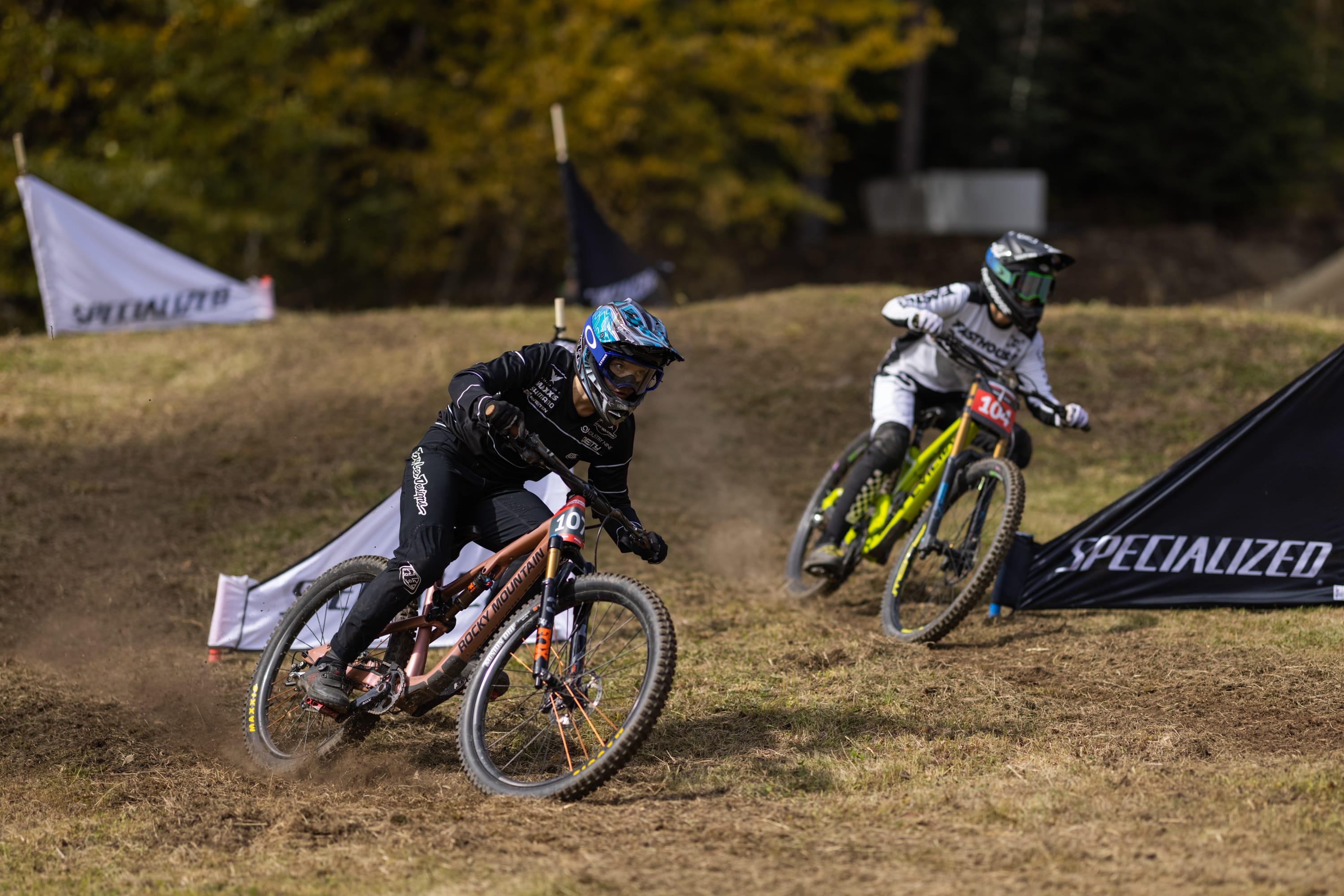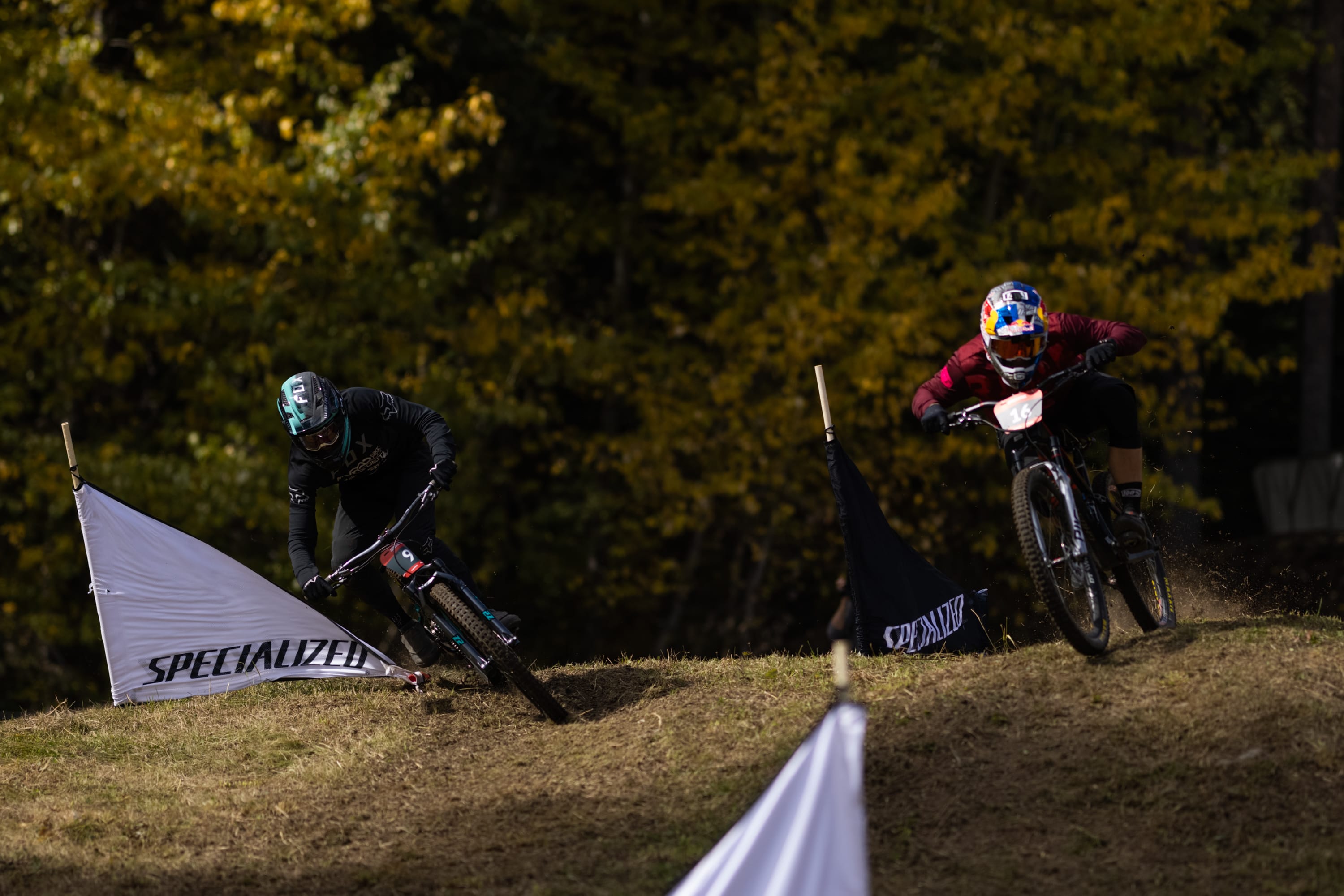 Not only did Sun Peaks have first-class downhill action to marvel at. For the first time ever, in dual slalom, riders had to prove their skills there. The course offered racing drivers an individual face-to-face battle over a distance of 250 meters with six berms, a scooter, a spine and a series of green turns, to be overcome as quickly as possible. Was.